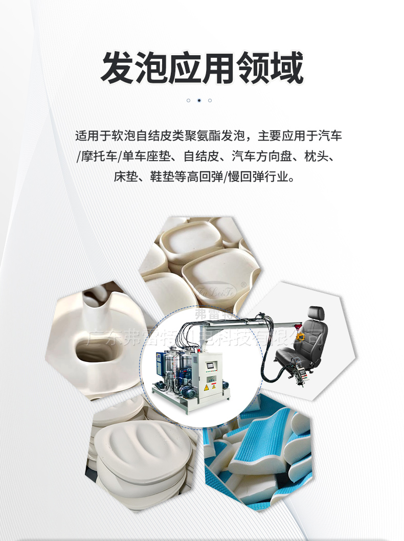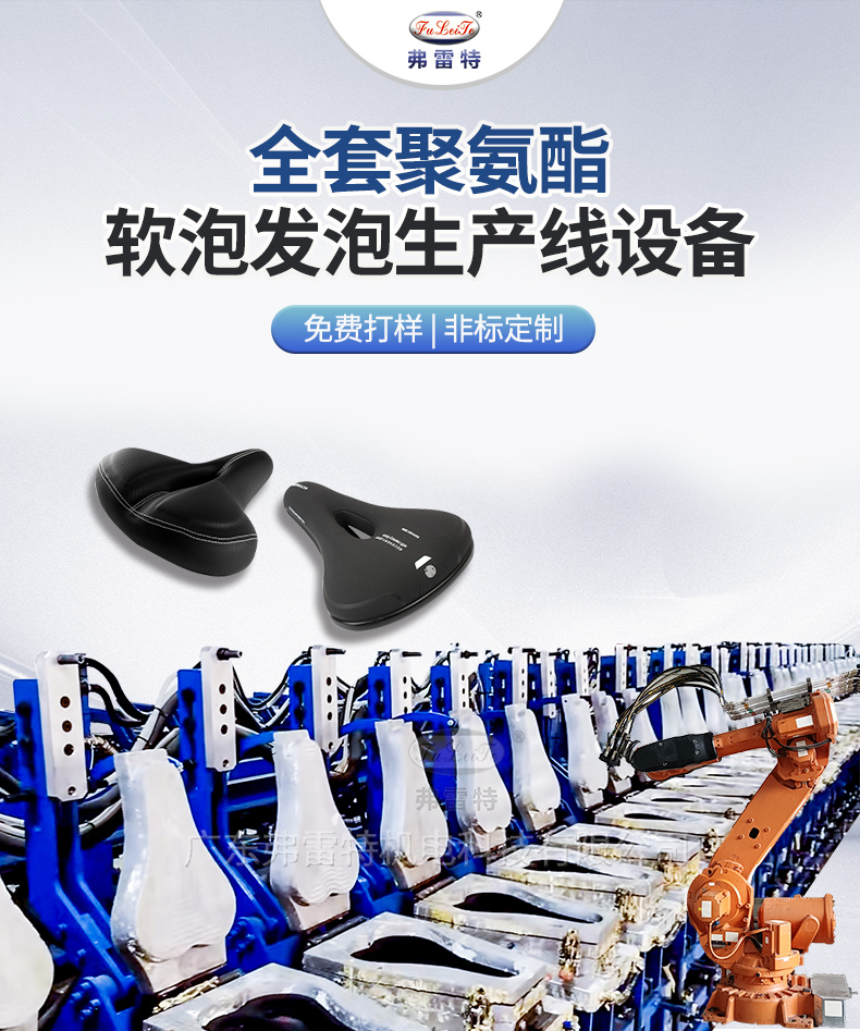 自行車鞍座環形生產線,適用于批量生產汽車座椅、坐墊、家具家居等聚氨酯產品,自動化生產線,還得看弗雷特!高壓發泡機,采用聚氨酯發泡材料,能夠在保證產品強度的同時,減少產品的重量,有利于產品的輕量化設計,適用于各種不同類型和規格的加工件表面,可以根據需要進行定制和調整,滿足不同行業和領域的需求。