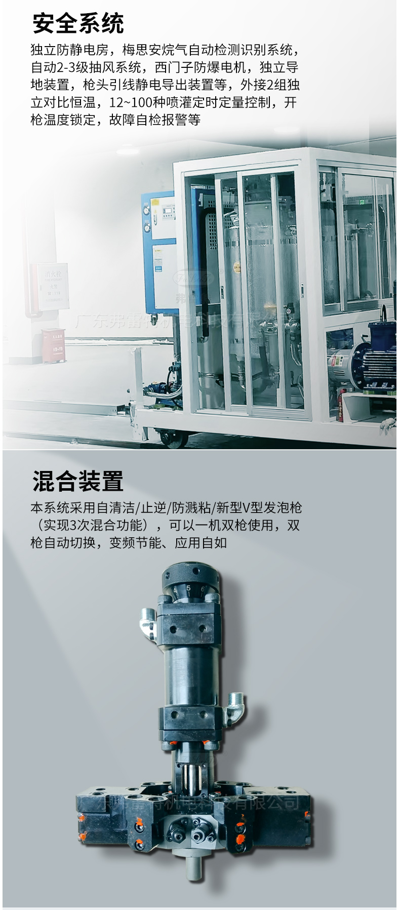 本系統采用自清潔、止逆、防濺粘、新型V型發泡槍,實現3次混合功能,結構美觀、操作方便。