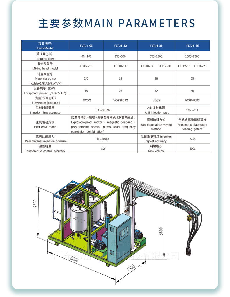 2 | 適用原料粘度(20℃) | 聚醚多元醇POL:~2500MPas 多異氰酸酯ISO:~1000MPas |