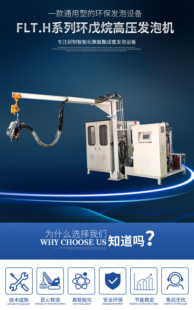 該系列發泡機型有FLT.H-06/12/28/55,環戊烷作為硬質聚氨酯泡沫的新型發泡劑,用于替代對大氣臭氧層有破壞作用的氯氟烴(CFCS),現已廣泛應用于生產無氟冰箱、冰柜行業以及冷庫、管線保溫等領域。無氟發泡及環戊烷安全檢測,警報及處理系統令環戊烷發泡機的使用變得更加安全和可靠,隨著蒙特利兒等公約規定的禁用ODS期限的臨近,CFCr和HCFCs類產品不久將被禁用,環戊烷將成為聚氨酯發泡劑領域的主角。因此,環戊烷發泡機用途相當廣泛,滿足市場需求,順應環保趨勢。