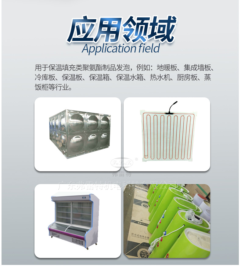 用于保溫填充類聚氨酯制品發泡,例如:地暖板、集成墻板、冷庫板、保溫板、保溫箱、保溫水箱、熱水器、廚房板、蒸飯柜等行業。
