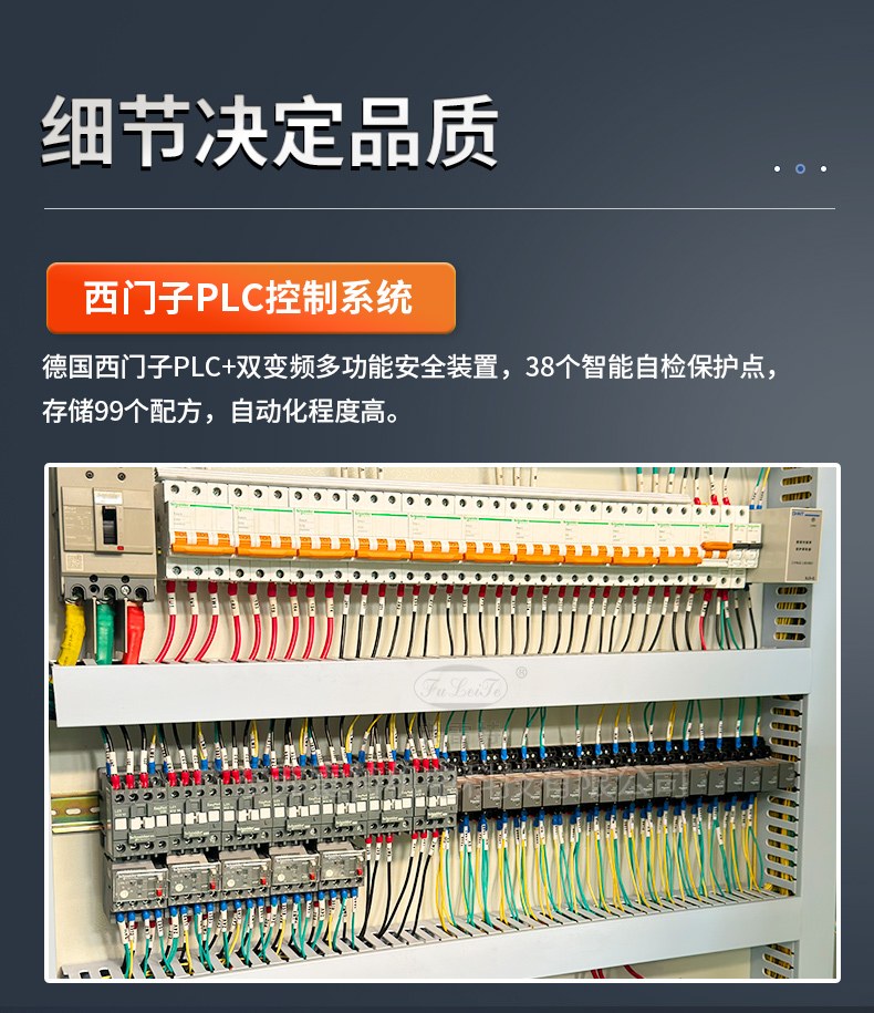 1、電氣控制: 采用以西門子PLC、施耐德配件為主的電氣控制系統(tǒng),全模塊化集成控制所有工藝流程,操作簡(jiǎn)單,智能穩(wěn)定。