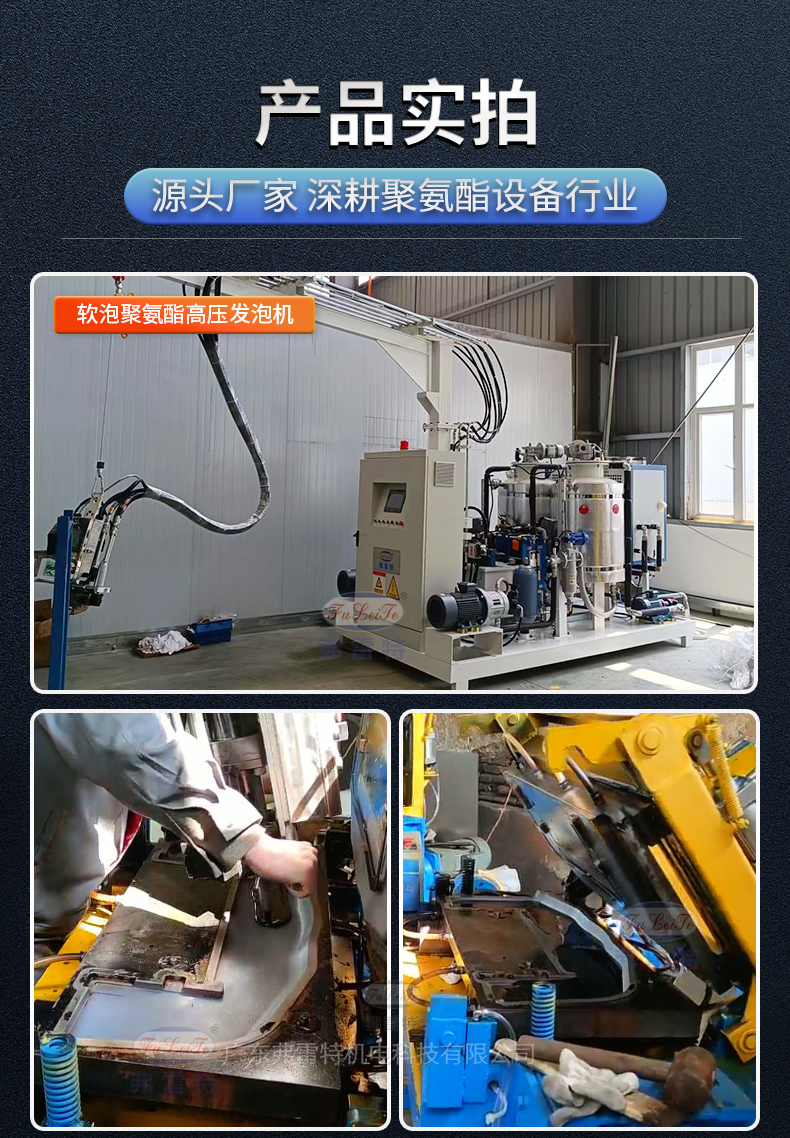 將兩組份原料,分別儲存在兩個儲料罐中,通過兩臺高精度柱塞計量泵,輸送至混合槍頭,通過高壓對射讓物料充分混合,高壓碰撞,泡孔細膩,大大提高產品質量。