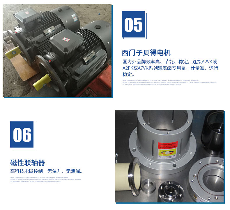 混合裝置:本系統采用自清潔/止逆/防濺粘/新型V型(實現3次混合功能)發泡槍,結構美觀、操作方便。配合西門子聚氨酯專用泵,注射準,混合效果很好。