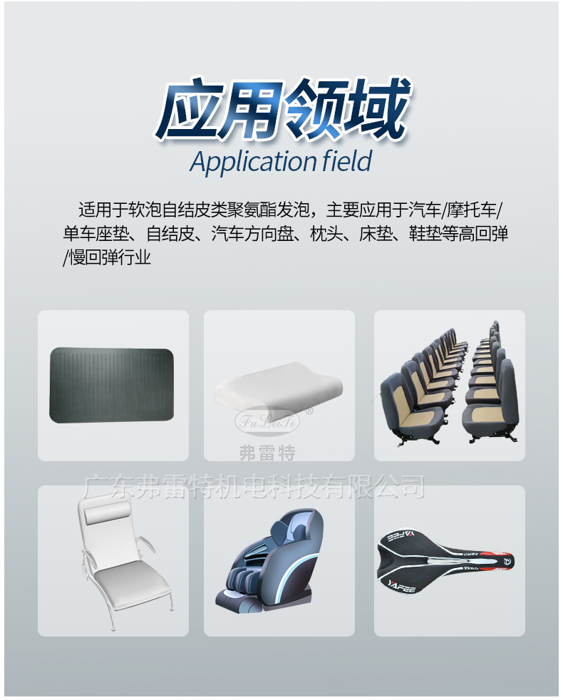 適用于軟泡自結皮類聚氨酯發泡,主要應用于汽車/摩托車/單車座墊、自結皮、汽車方向盤、枕頭、床墊、鞋墊等高回彈/慢回彈行業。
