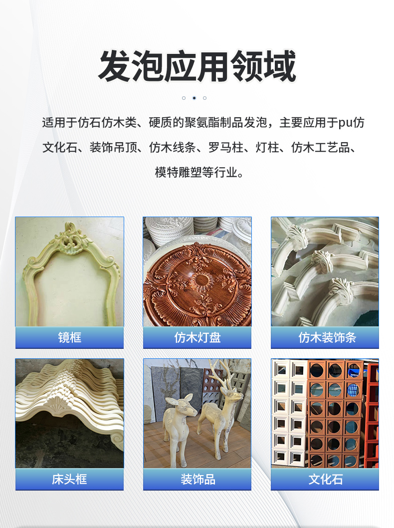帶軌道仿木硬泡聚氨酯高壓發泡機設備。整條地軌線長16米,可同時供兩臺發泡機使用,軌道兩旁可以放置多個發泡模具。仿木聚氨酯高壓發泡機,一機多用。可澆注發泡仿木鏡框、裝飾條、雕花床頭板等等。人工少、成本低、效率高,弗雷特聚氨酯高壓發泡機能幫您實現。發泡成品效果非常好!