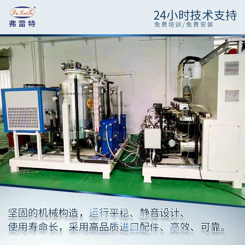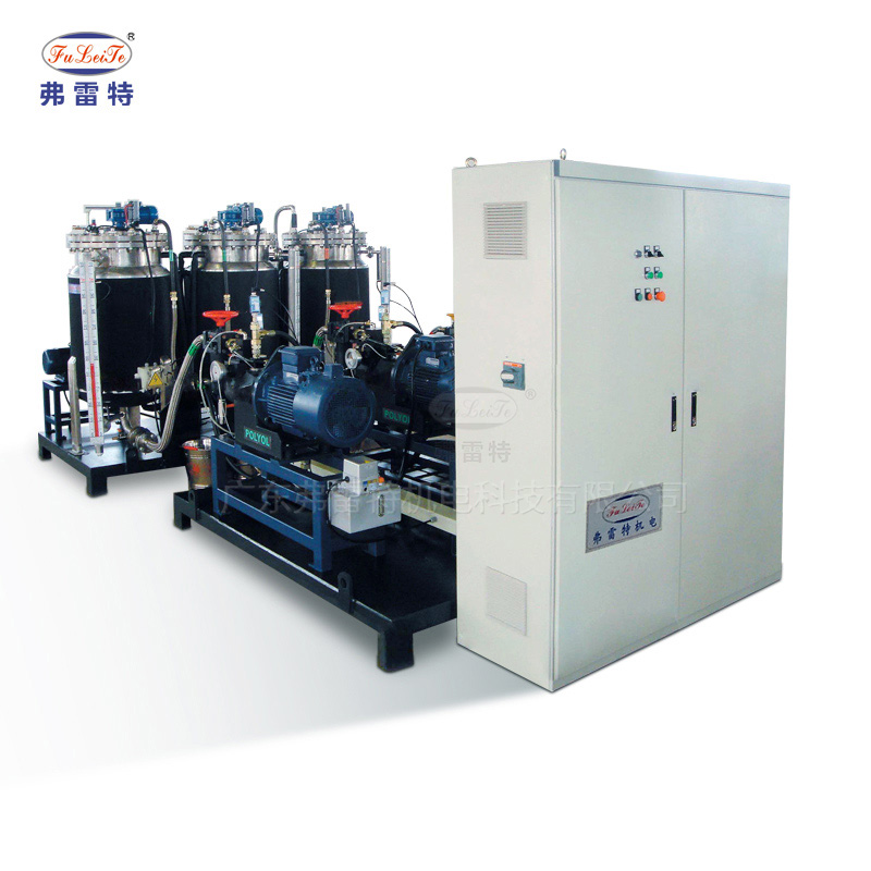 組份、多組份聚氨酯高壓發泡機是將多種不同配方的生產工藝通過設備的配置及程序設定融合到一臺機器去完成,例如:三組份聚氨酯高壓發泡機的設定條件是B+A1或A2,當工藝要求是B+A2時,系統將自動轉換成設定的要求B+A2進行灌注多組份的設定條件是 B1+ A1---B2+A2---B3+ A3最多6組份3種配方。