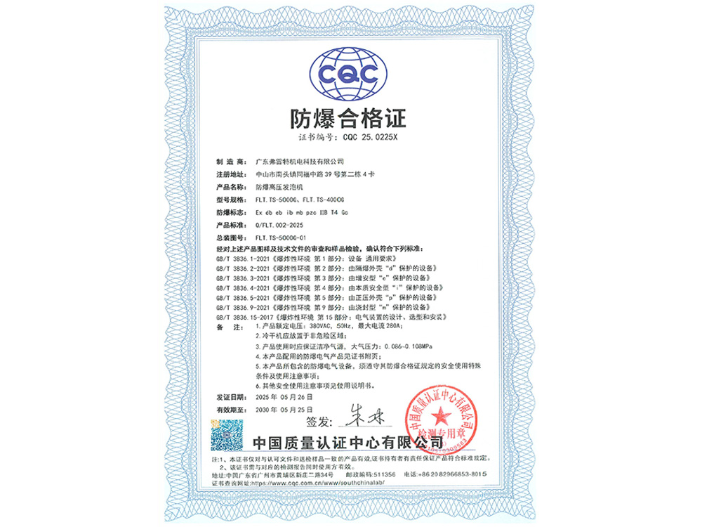 防爆高壓發泡機合格證